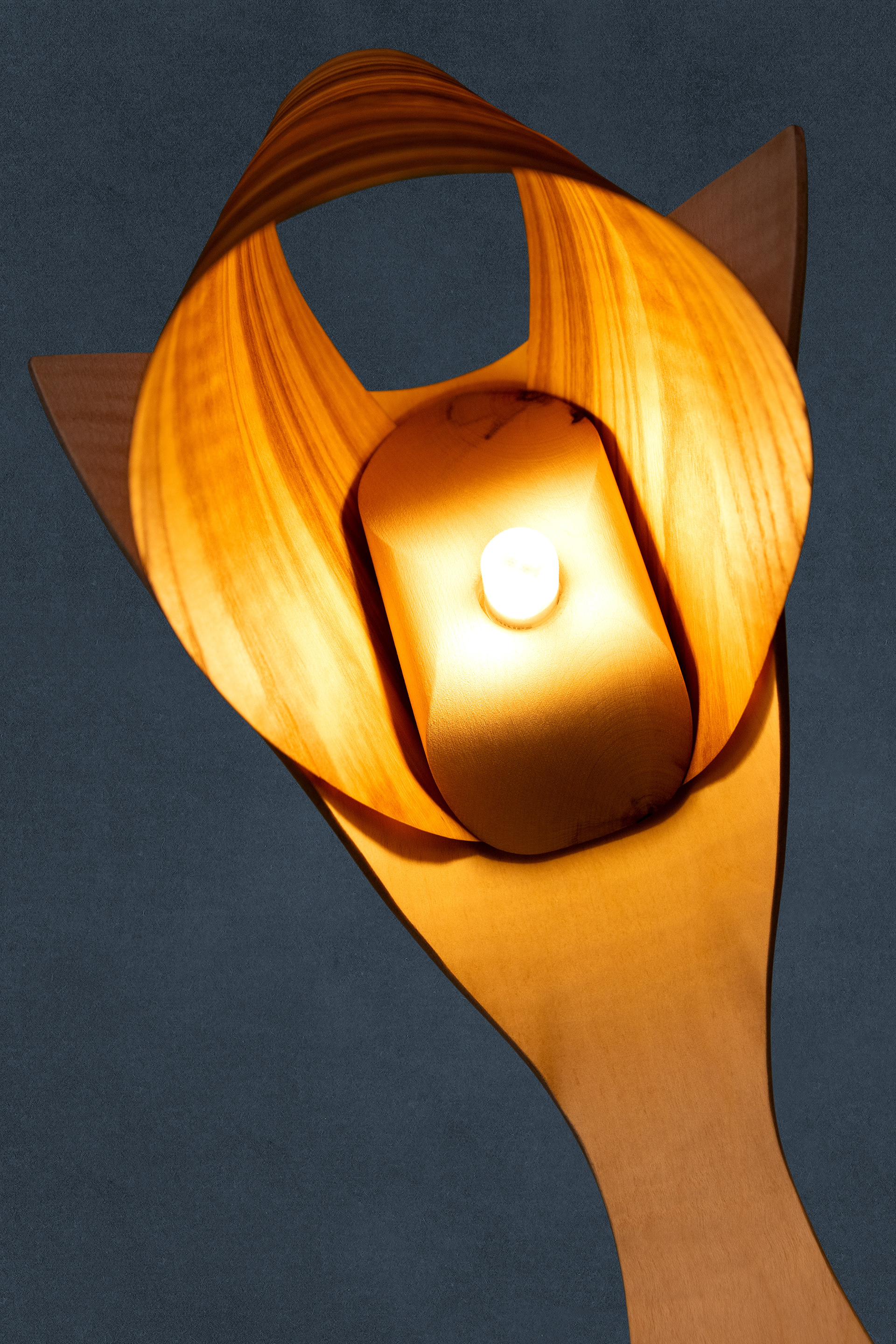 Lisa est une lampe de table conçue entièrement en bois. Ses lignes courbes apportent un aspect floral vivant. Le placage massif translucide s’illumine afin de mettre en valeur son veinage. Il vous sera possible de choisir vos essences et couleurs afin d’adapter les teintes selon vos envies. Le design de la lampe s’accorde aussi bien dans un espace épuré que décoratif. Sa posture élégante et son jeu de lumière éveilleront à coup sûr le besoin de contempler ses formes sous différents angles. L’alimentation en 12V est soigneusement incrustée dans les couches de lamellé-collé afin de maintenir une certaine finesse et légèreté. Un simple bouton tactile permet de contrôler l’intensité de l’éclairage. La lampe Lisa répond à différentes utilisations. Son orientation lumineuse ainsi que sa hauteur lui permettent de s’intégrer parfaitement à un bureau, une table de chevet ou un meuble de salon.